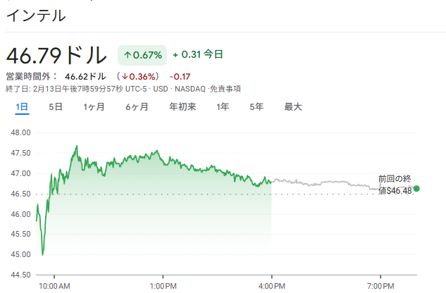 インテル(INTC)の株価は、2026年1月22日に第4四半期決算が発表された直後、1日で約17%も急落する局面がありました。