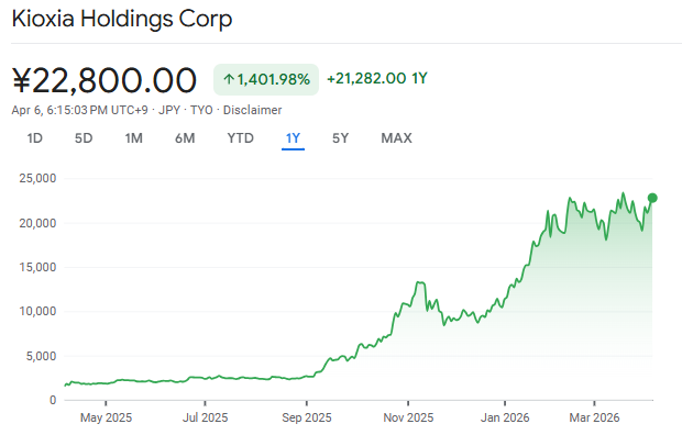 2月のキオクシア決算で「2026年分の生産枠が完売状態」と極めて強気な見通しが示されたため、海外のヘッジファンドやデイトレーダーからの投資資金が一気に流入しました。